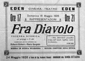 A Città di Castello è il Teatro degli Illuminati nel 1902 a proiettare film, seguìto dal Teatro Bonazzi (Teatro Vittoria dal 1918) e dalle Sale Balicchi di via dei Casceri. Il 21 dicembre 1907 si inaugura la prima sala cinematografica, Cinematografo Galvani, in via Sant’Antonio. Nel 1911 viene aperto il Cinematografo Moderno; l’anno dopo il tecnico Furio Fantini rinnova l’attività e la denomina Iris. Intanto cresce l’interesse del mondo cattolico per il cinema, come ben intuisce il vescovo Liviero. Alla fine della I Guerra Mondiale un gruppo di borghesi lungimiranti intende costruire una sala, da cinematografo e da concerti, in un edificio tra via XI Settembre e piazza Fucci; il 15 settembre 1920 davanti al notaio Cecchini viene costituita la SICE (Società Industrie Cinema Eden). Il cinema Eden viene aperto al pubblico il 16 maggio 1921; alla fine dell’anno la sala cinematografica naviga a vele spiegate, ma il bilancio già mostra segnali inquietanti. Dopo un breve periodo in cui la sala è data in affitto, i soci riprendono la gestione diretta; gli spettacoli hanno un tale sèguito che, per fornire accompagnamento musicale ai film muti, si forma un’ “orchestrina” diretta da Roberto Arcaleni. Nel maggio 1923, con lo scopo di accrescere il prestigio del cinema Eden, viene inaugurato il tetto semovente riuscendo così a combinare i vantaggi di uno spazio chiuso con quelli di uno spazio aperto. Dall’agosto 1927 viene fatto l’obbligo, in tutte le sale, di proiettare ad ogni spettacolo il Cinegiornale dell’Istituto Luce, fondato da Mussolini nel 1925. Dopo la crisi economica del ’29 la rinascita del cinema italiano avviene in coincidenza con l’avvento del sonoro e del doppiaggio. Per proiettare le prime pellicole sonore, il cinema Eden beneficia di un’entrata economica fornita dall’Opera Nazionale Dopolavoro; ma nel 1935 si dovrà ricorrere all’intervento della locale Cassa di Risparmio. In questi anni il cinema Eden è denominato cinema Littorio; nel 1937 a Città di Castello tre sale (Littorio-Sant’Egidio-Vittoria) sono attive contemporaneamente e si mostrano in competizione tra loro. Nel dopoguerra Andreotti, Sottosegretario alla Presidenza del Consiglio, per mezzo della Legge n° 958 rafforza la politica protezionistica a favore del cinema italiano. Con il lento ritorno alla normalità le sale cinematografiche tifernati, oltre che proiettare film, sono usate per ospitare comizi, assemblee, feste da ballo e rappresentazioni filodrammatiche. Nel 1954 l’avvento della televisione segna una svolta epocale nella società italiana; i cinema tifernati evidenziano un lento calo di affluenza che determina il declino delle sale. Il cinema Vittoria chiude definitivamente nel maggio 1985 quando il proprietario, avv. Luigi Pillitu, è costretto a interrompere l’attività a sèguito di problematiche varie, legate alle norme di sicurezza. Il cinema Eden ha prolungato per altri trent’anni la sua attività, dopo coraggiosi tentativi di ammodernamento tecnico e strutturale portato avanti dalla sua proprietaria, prof.ssa Rosanna Mistruzzi. Nell’anno 2015 l’Eden chiude dopo quasi un secolo di esercizio.